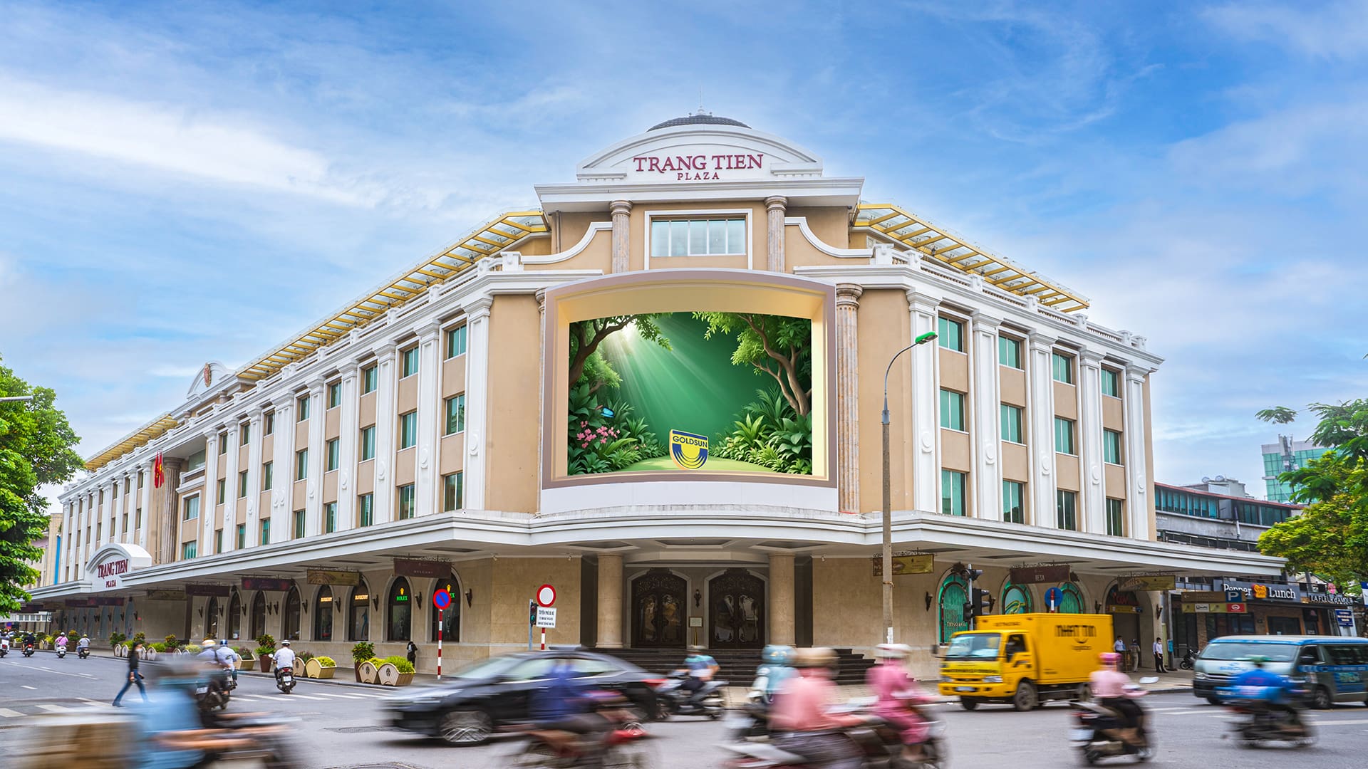 Goldsun Media là đơn vị tiên phong trong lĩnh vực quảng cáo ngoài trời tại Việt Nam, sở hữu hệ thống biển bảng và Digital OOH quy mô lớn tại các nút giao thông trọng điểm và sân bay quốc tế, mang đến hàng trăm nghìn điểm chạm mỗi ngày, giúp thương hiệu thu hút ánh nhìn và gia tăng nhận diện giữa nhịp sống hiện đại.