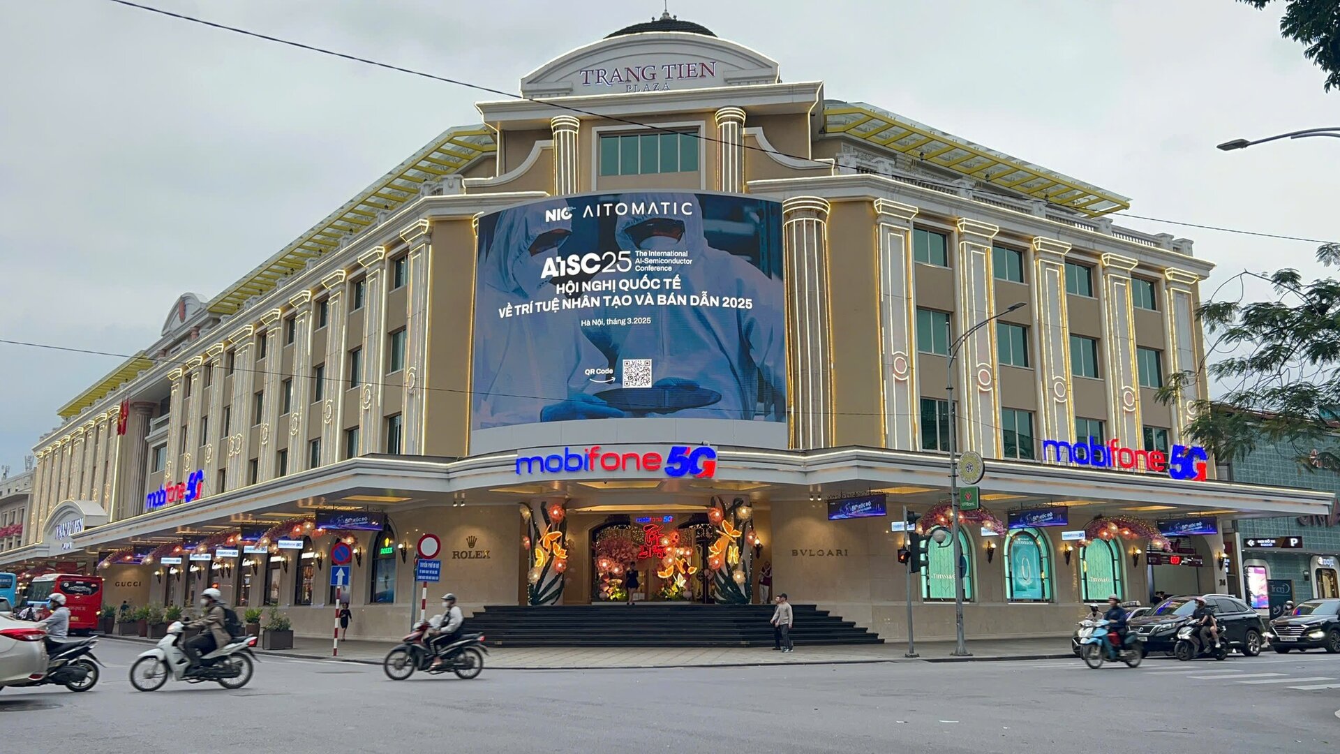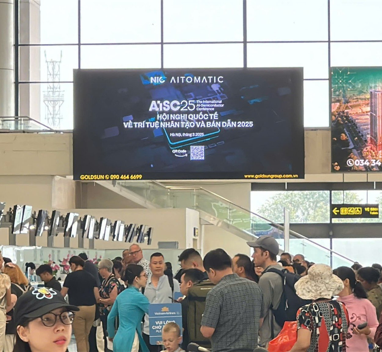Một số hình ảnh Hội nghị quốc tế AISC 2025 trên hệ thống truyền thông DOOH của Goldsun Media
