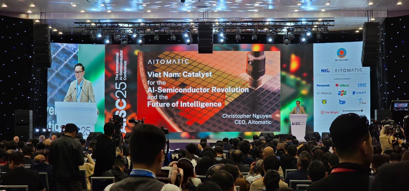 AISC 2025 do Trung tâm Đổi mới sáng tạo Quốc gia (NIC), Bộ Tài chính phối hợp với Aitomatic (Hoa Kỳ) tổ chức với chủ đề: “Kiến tạo tương lai: Kết nối AI & Công nghệ bán dẫn toàn cầu”. Sự kiện diễn ra từ ngày 12 đến ngày 16 tháng 3, 2025 tại Hà Nội và Đà Nẵng, đã thu hút sự quan tâm của hàng ngàn lãnh đạo, chuyên gia và doanh nhân trong lĩnh vực công nghệ, trí tuệ nhân tạo và bán dẫn đến từ khắp nơi trên thế giới.