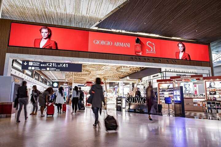Quảng cáo tại Quảng trường Digitale ở sân bay Charles de Gaulle