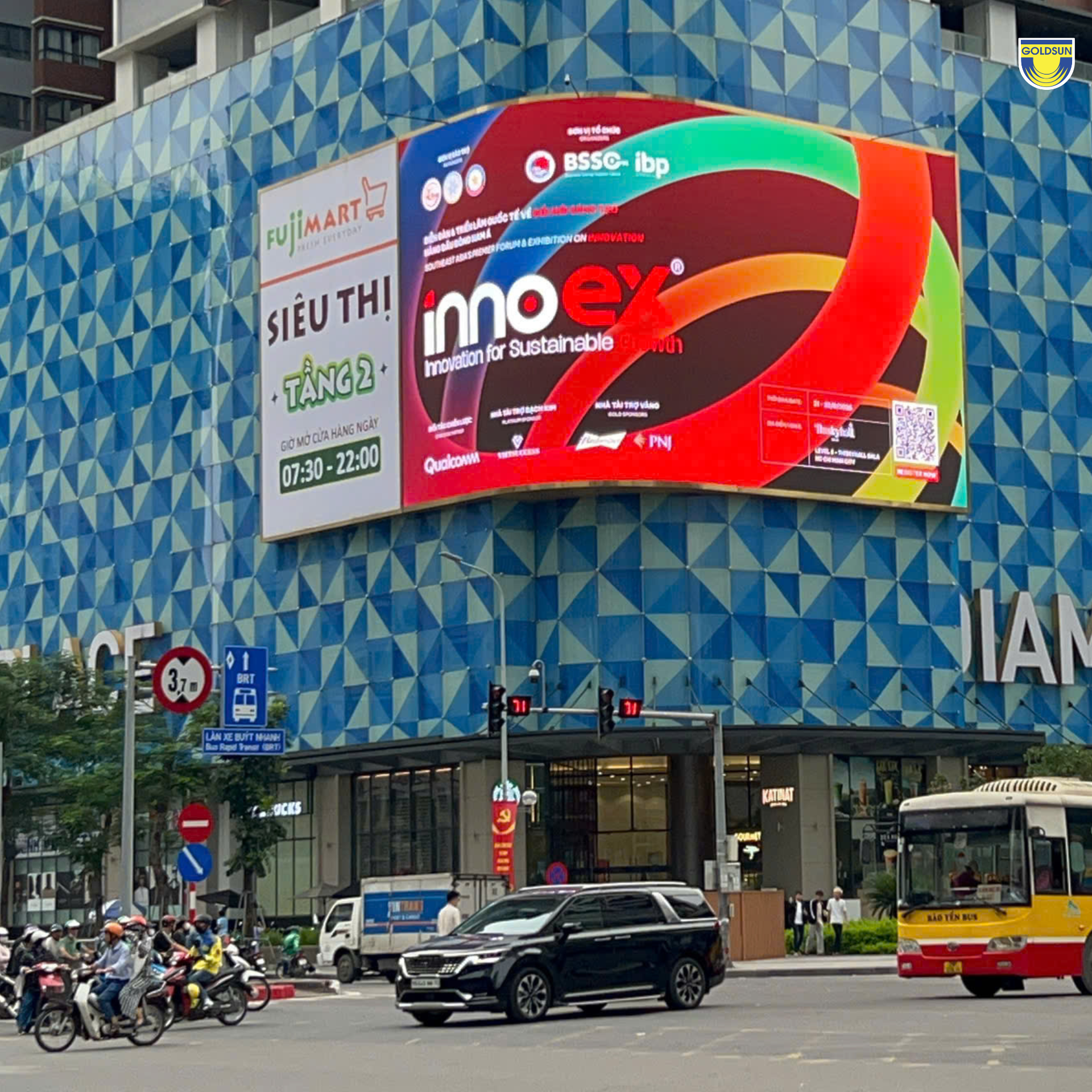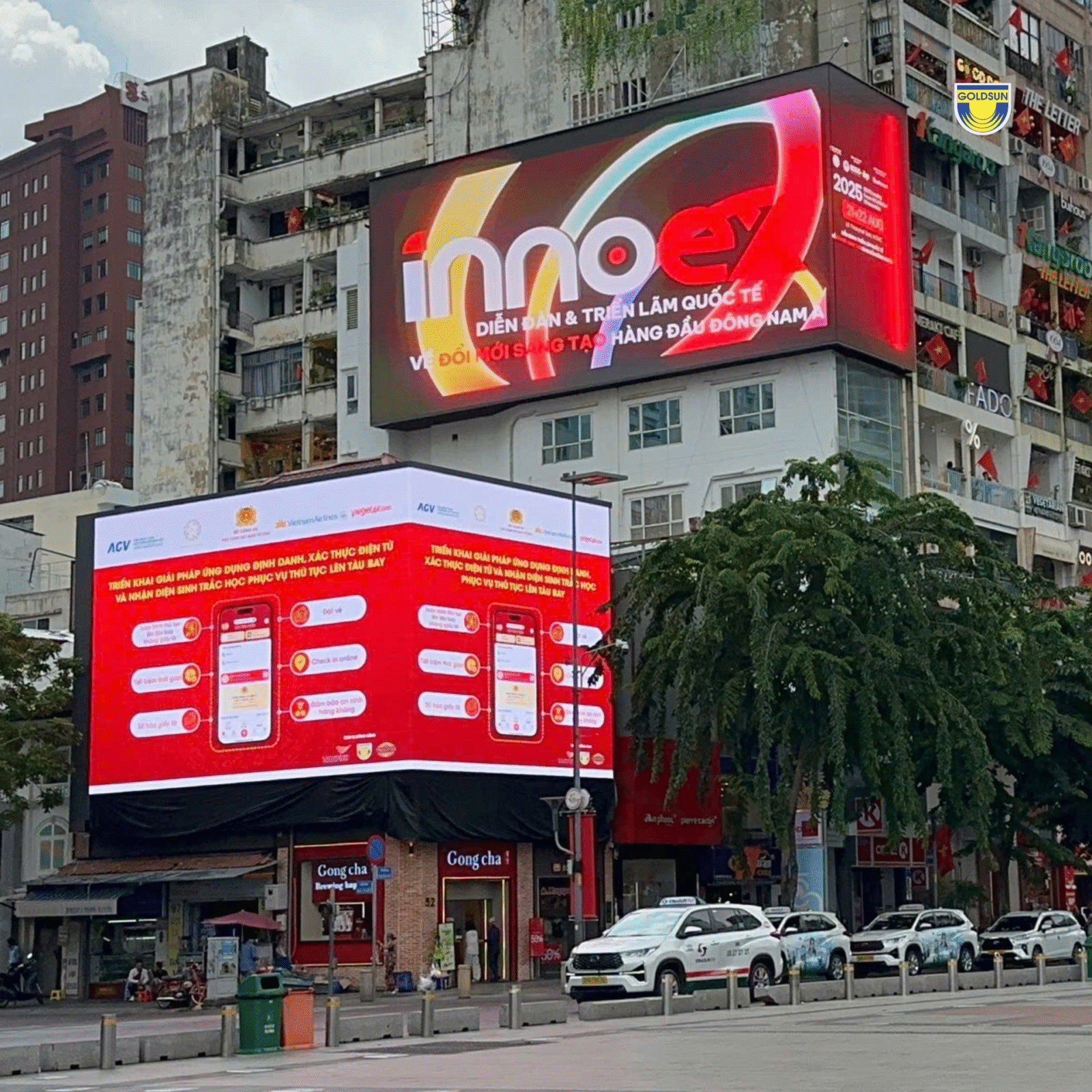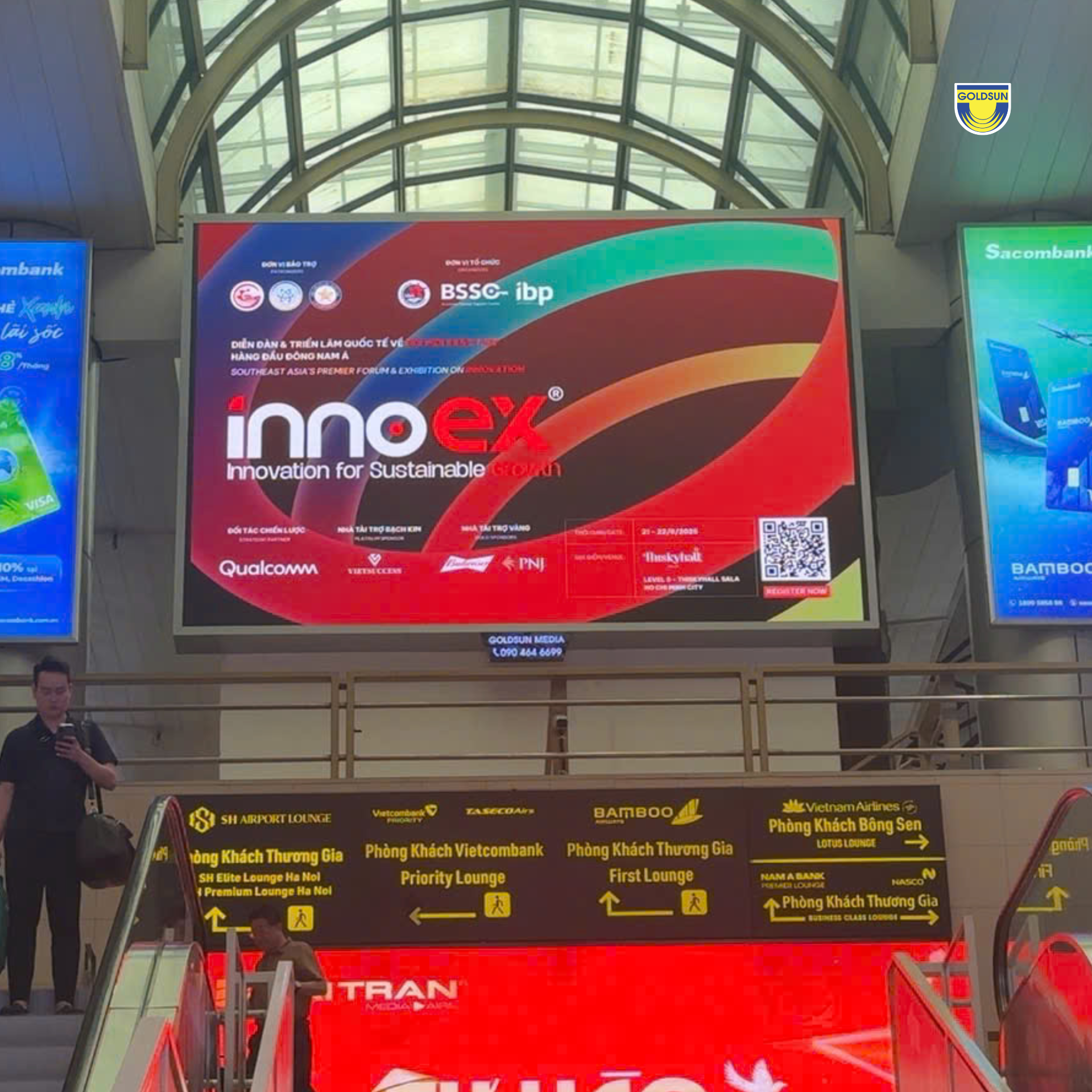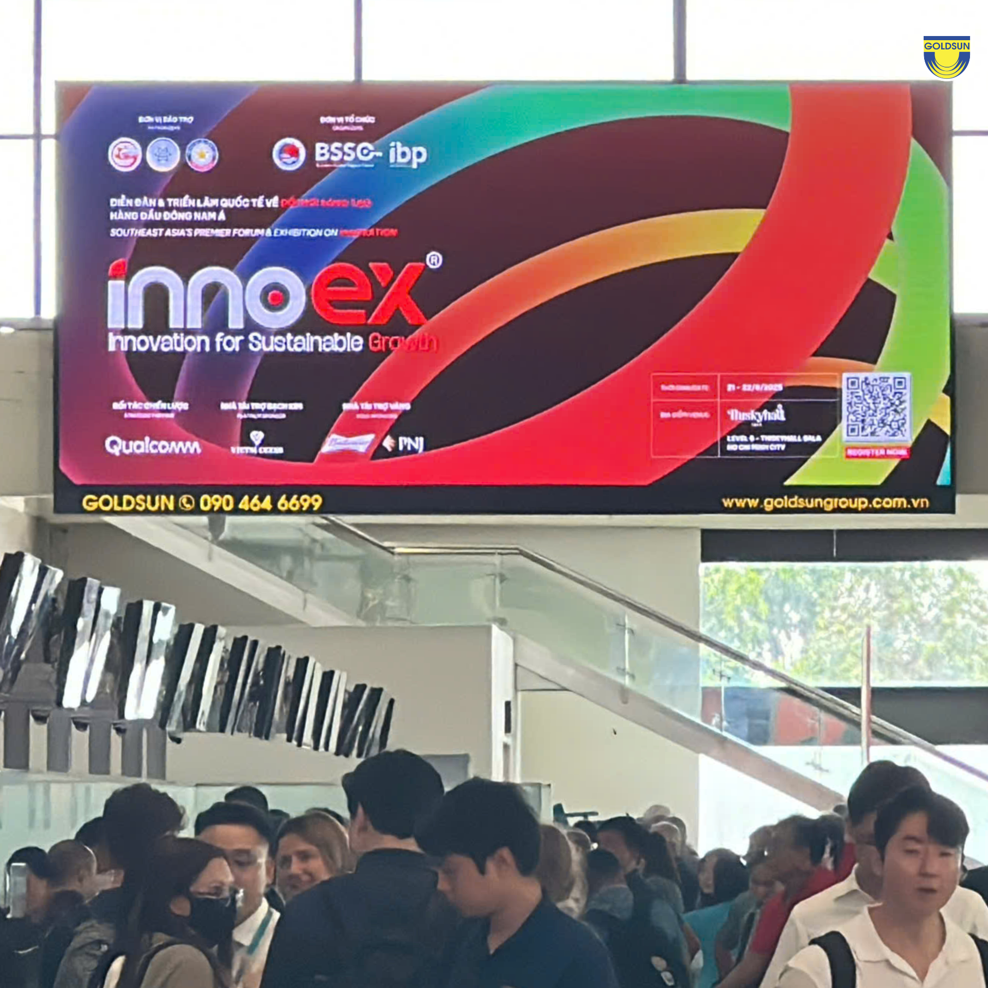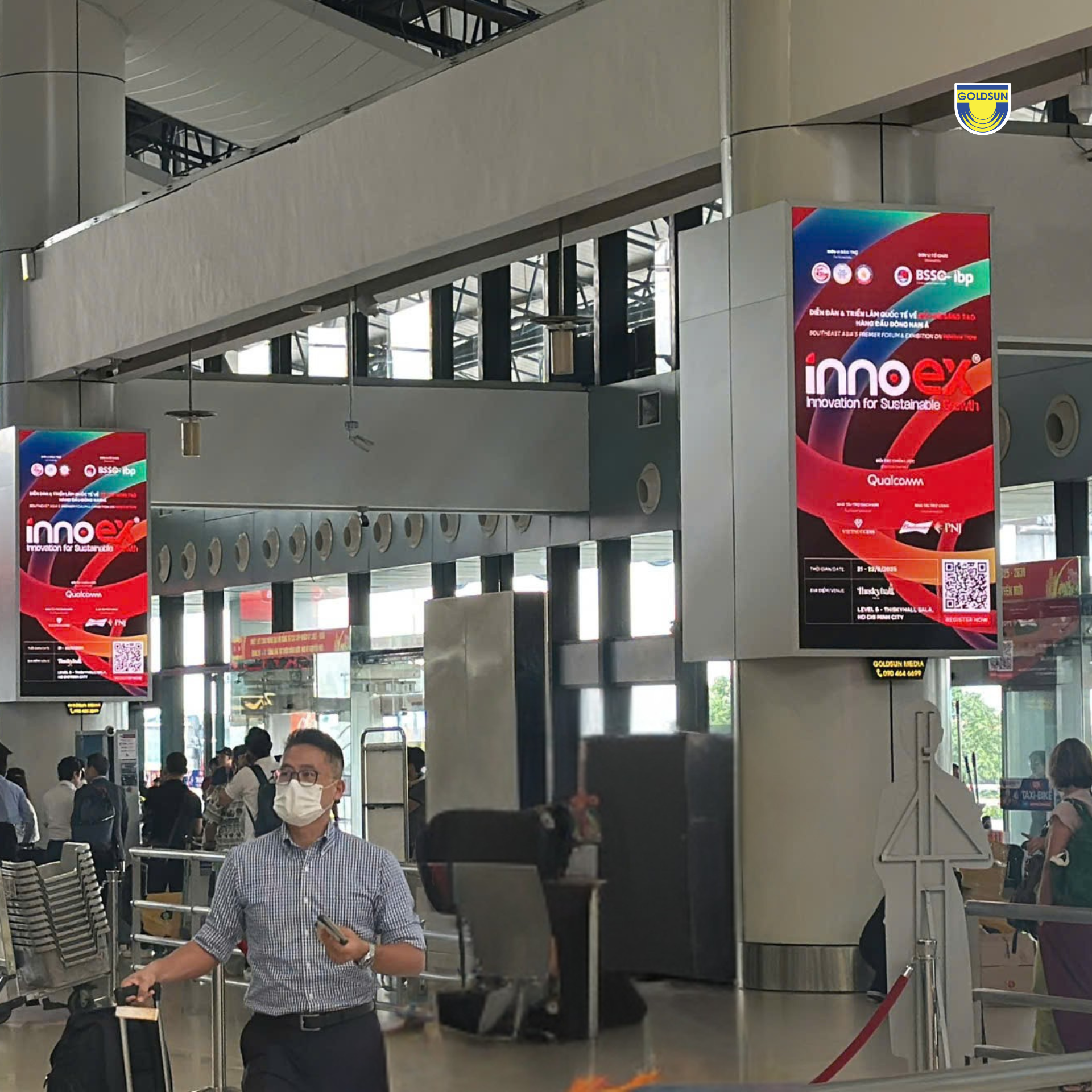 Với vai trò Đối tác truyền thông chính thức, Goldsun Media đã góp phần lan tỏa hình ảnh của InnoEx 2025 trên hệ thống màn LED khắp cả nước và sân bay quốc tế