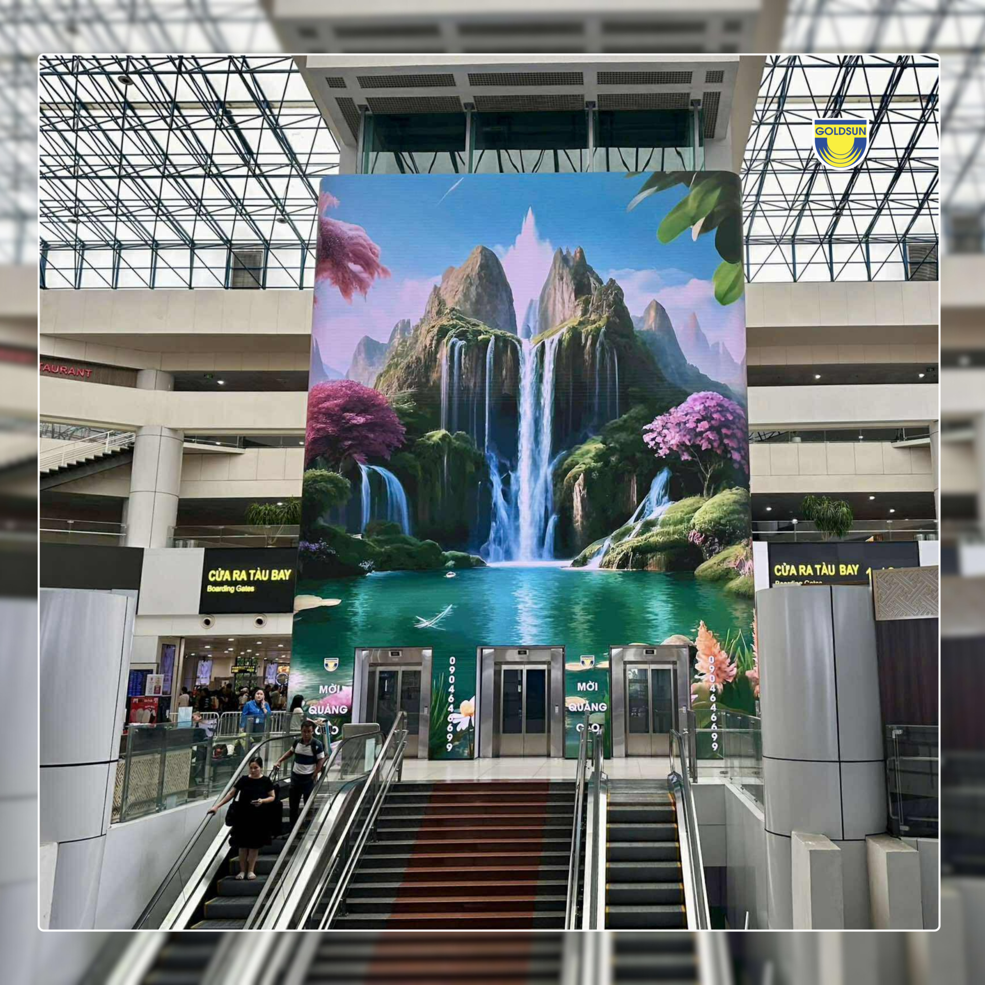 Goldsun Media chính thức vận hành màn hình LED indoor lớn nhất Việt Nam tại Nhà ga T1 – Sân bay Quốc tế Nội Bài, đánh dấu bước tiến mới trong việc nâng cấp trải nghiệm thị giác tại các điểm chạm truyền thông trọng yếu. Với diện tích hiển thị lên đến 207m², đây là điểm quảng cáo sở hữu quy mô vượt trội và vị trí chiến lược, hướng tới hàng triệu hành khách mỗi tháng.