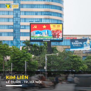 - Thuận tiện: Vị trí này có lưu lượng giao thông rất đông đúc và gần khu vực hầm vượt Kim Liên. Màn hình LED được lắp đặt đón hướng nhìn tốt từ các hướng.