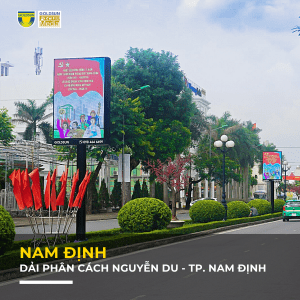 - Hệ thống biển LED kết hợp hộp đèn nằm trong dải phân cách đường Nguyễn Du, thành phố Nam Định – Tỉnh Nam Định. Một trong những khu vực trung tâm của thành phố Nam Định, hai bên là nhà Văn hóa 3-2, Quảng trường 3-2, tượng đài Trần Hưng Đạo, công viên Vị Xuyên… Sắp tới đoạn dải phân cách này sẽ trở thành tuyến đường đi bộ trong thành phố.